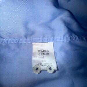 Tommy Hilfiger Men's Regular Fit Wrinkle Free Long Sleeve Button Down Blue Top Sz 18 32/33 2XL, 100% cotton, Pocket on left chest, round hem, still has a couple extra buttons on care tag, Excellent pre owned condition.
