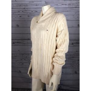 Tommy Hilfiger Men's Shawl Collar Cream Pullover Sweater Luxury Knit size XL
