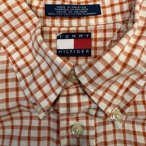 Tommy Hilfiger Men’s Shirt Size XL Orange Ivory Plaid Long Sleeve Button Down