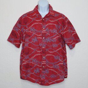 Pre-Owned Condition! 100% Cotton. Handsome Seashell Island Hawaiian Print Button Down Single Chest Pocket Shirt with White Glossy Buttons(spare attached).