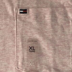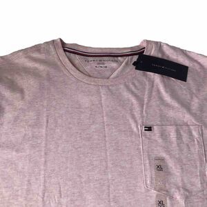 Elevate your casual style with this designer Tommy Hilfiger T-shirt in a heather pink color. The short-sleeved shirt features a crew neck and a convenient pocket. Made with lightweight, machine-washable cotton, it is perfect for all seasons and easy to care for. The solid pattern with a logo accent provides a classic and timeless look. This T-shirt is available in size XL for regular fit, suitable for men who appreciate quality and style.