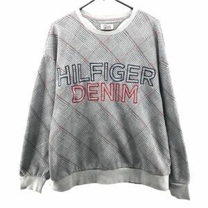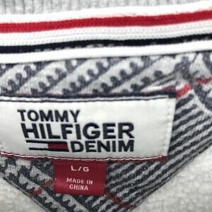 Tommy Hilfiger Denim Spell Out Sweatshirt Mens Size Large Gray Red Pullover. Gently used with no rips or stains. Please see photos. Cotton and polyester.