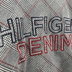 Tommy Hilfiger Mens Size Large Spell Out Sweatshirt Gray Red Pullover Plaid