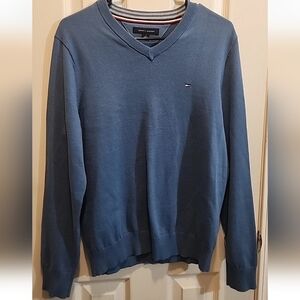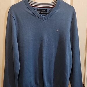 Tommy Hilfiger Men's Size Medium Pullover Sweater Vneck Classic Knit Logo Teal