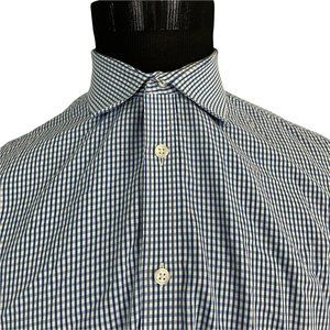 Pre-Owned in Excellent Condition Tommy Hilfiger Men's Slim Fit Blue White Check Long Sleeve Button Front Shirt 17