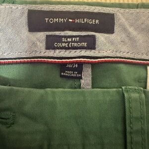 Keywords: Tommy Hilfiger slim fit pants, men’s chinos, casual dress pants, 38x34 Tommy Hilfiger, green chinos