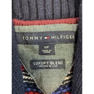 Tommy Hilfiger Mens Small Shawl Collar Wool Blend Sweater Nordic Red White Blue