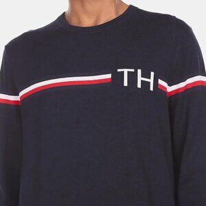 Tommy Hilfiger Men's Stripe Logo Cotton Knit Sweater White L