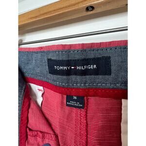 Tommy Hilfiger Men's Striped Red Chino Shorts with Pockets 100% Cotton Size 36