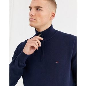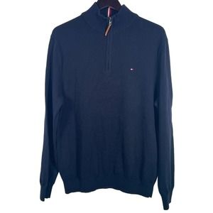 Tommy Hilfiger Mens Sweater 1/2 Half Zip Mock Turtleneck Navy Blue, Sz XL