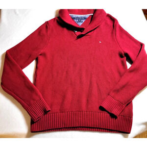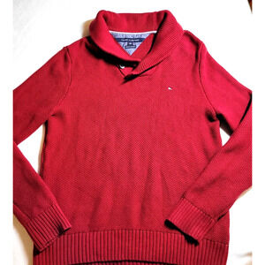 Tommy Hilfiger Mens Sweater L Large Red Pullover Pima Merino Wool Dad Grandpa
