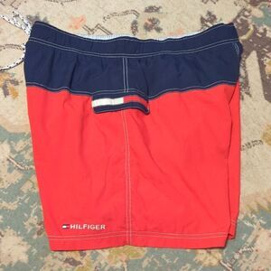 Tommy Hilfiger Mens Swim Trunks Medium Blue White Red Shorts Lined Pockets Logo