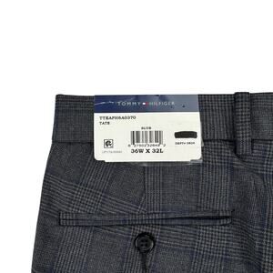 Tommy Hilfiger Mens TH Flex Tate Modern Fit Plaid Dress Pants Gray Blue 36x32