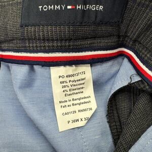 Tommy Hilfiger Mens TH Flex Tate Modern Fit Plaid Dress Pants Gray Blue 36x32
