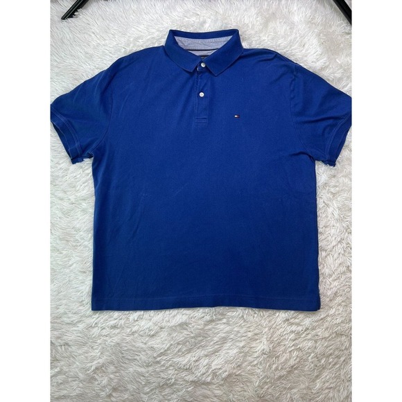Tommy Hilfiger Men's TH Lux Interlock Blue Custom Fit Polo Shirt Size: L