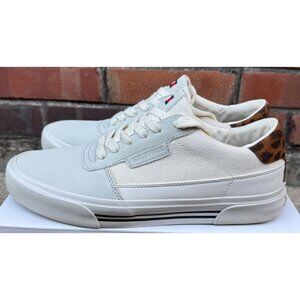 Tommy Hilfiger Mens TWEZAN 10 M White Canvas Sneakers Lepeord Print Accent
