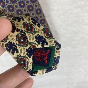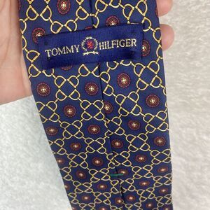 Tommy Hilfiger Men's Tie 100% Italian Silk Made In US Red Navy Gold Pattern