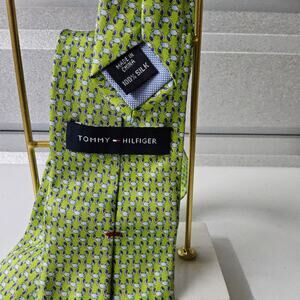 Tommy Hilfiger Men's Tie 100% Silk Green with Tiny Blue Crabs Novelty Print