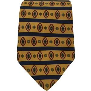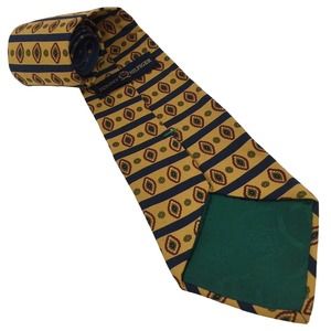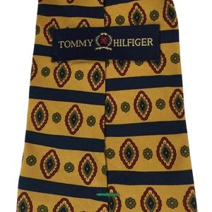 Tommy Hilfiger Mens Tie Italian Silk Yellow Blue Geometric Design Made in USA