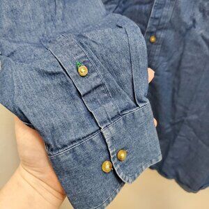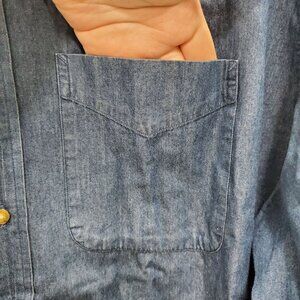 Tommy Hilfiger Men's Vintage Blue Chambray Long Sleeve Button Front Shirt 17 XL