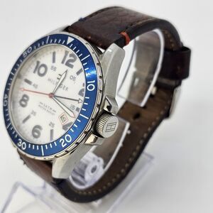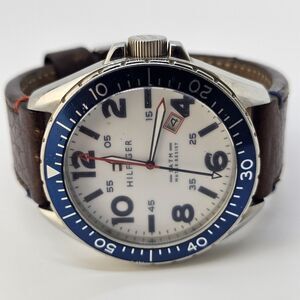 Tommy Hilfiger Men's Watch 50MM White Dial Brown Leather Band Straps New Battery