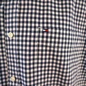 Tommy Hilfiger Mens XL Shirt Gingham Button Down Classic Fit Stretch Short Sleev