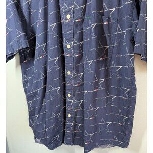 Tommy Hilfiger Mens Y2K Blue Stars Casual Button Up Short Sleeve Shirt Large