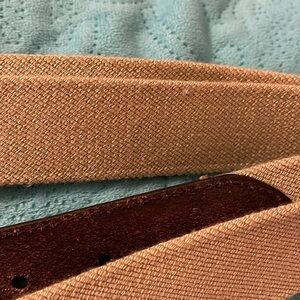 Tommy Hilfiger Men's size 38-40 Canvas with Leather ends Casual Belt preowned. dark brown leather with tan khaki canvas, material preowned little signs of where Tommy Hilfiger wording on buckle.