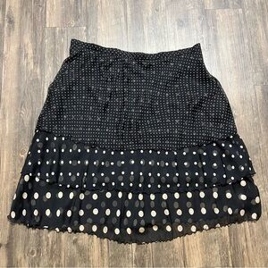Tommy Hilfiger Mid Length Silk Black White Polka Dots Tier Ruffle Layer Skirt 16