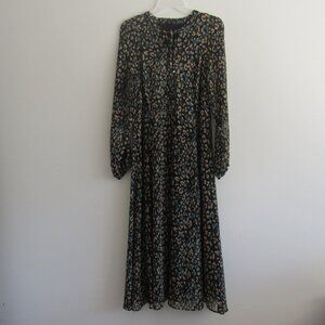Tommy Hilfiger Midi Dress 10 Green Animal Print Chiffon Romantic Feminine