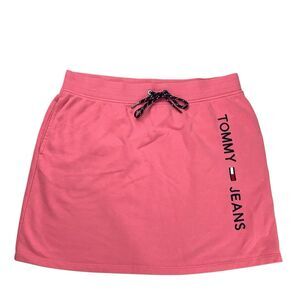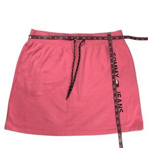 Tommy Hilfiger Mini Skirt Size L Pink Elastic Waist Athletic Embroidered Logo Y2K Athletic Comfort