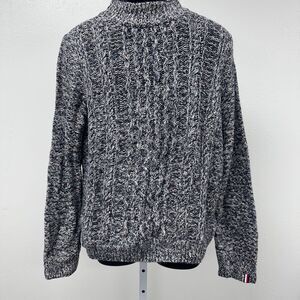 Tommy Hilfiger Mock Neck Cable Knit Sweater - Black/Gray/White - Size XL