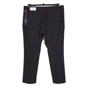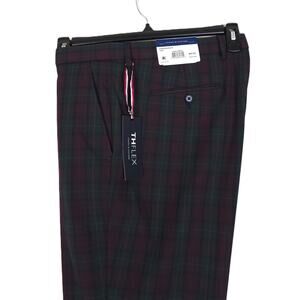 Tommy Hilfiger Modern-Fit Stretch Dress Pants Wine Green Windowpane 40x30 NWT