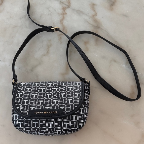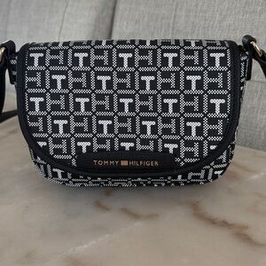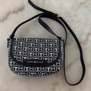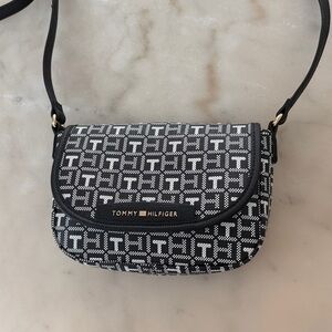 Tommy Hilfiger Monogram Black Gray and White Crossbody Shoulder Bag NWOT