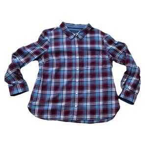 Tommy Hilfiger Multicolor Plaid Flannel Cotton Roll Tab Women's XL Shirt NWT