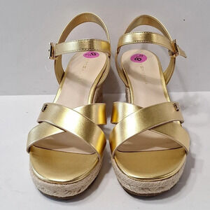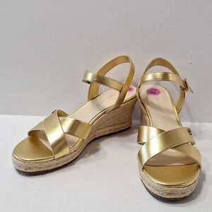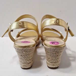 Tommy Hilfiger "NEW" Gold Platform Espadrille Ankle Strap Coquette Wedges