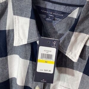 Tommy Hilfiger NEW - Sz M - pop over button down shirt adjustable sleeves plaid