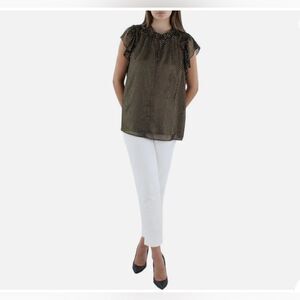 Tommy Hilfiger NWT Smocked Neck Waterfall Ruffle Sleeve Metallic Dot Top M