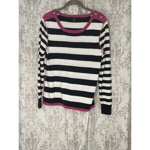 Tommy Hilfiger - Nautical Navy Stripped Sweater - Pink Trim & Button Accents - M