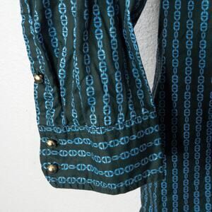 This Tommy Hilfiger shirt dress leans into a coastal preppy vibe with its navy-teal nautical chain print, gold-tone buttons, and easy button-front silhouette. The lightweight fabric and clean lines make it perfect for casual days, weekend outings, or warm-weather errands where you want something relaxed but still polished.