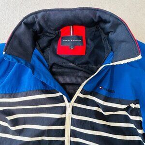 Tommy Hilfiger Nautical Striped Winbreaker Jacket Size M Blue Red Hooded Zip Up