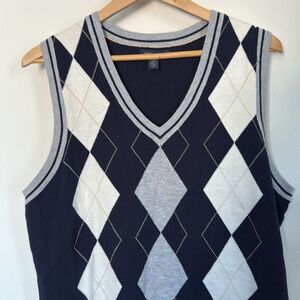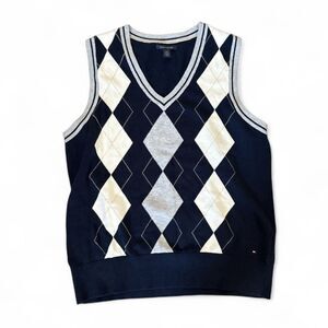 Tommy Hilfiger Navy Argyle V-Neck Sleeveless Sweater Vest Size XL