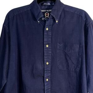 Tommy Hilfiger Navy Blue Crest Logo Button-Down Shirt Men’s Size Medium