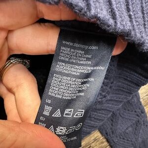 This blue crew neck sweater by Tommy Hilfiger showcases a sophisticated diamond knit pattern, offering a blend of classic style and modern flair. The medium-weight fabric ensures comfort and warmth, making it ideal for cooler days. Its cropped length adds a contemporary touch, perfect for pairing with high-waisted bottoms.