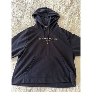 Tommy Hilfiger navy hoodie with logo. Perfect for casual fall and winter days, in excellent condition.