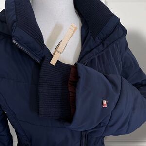 Tommy Hilfiger Navy Blue Mid Length Puffer Jacket Coat W/Hood Sz XXS