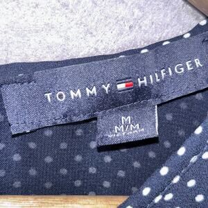 Tommy Hilfiger Navy Blue Polka Dot Blouse Medium Long Sleeve Loose Fit Classic