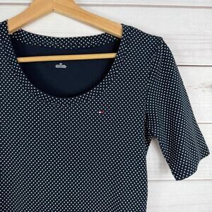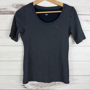 Tommy Hilfiger Navy Blue Polka Dot Short Sleeve Top Small