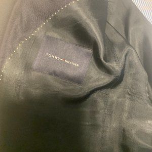 This Tommy Hilfiger Navy Blue Blazer in Size L blends luxury with sophistication. Crafted from a premium silk (55%) and wool (45%) blend, this blazer exudes timeless elegance and superior quality. Its navy blue color adds a touch of classic refinement to any ensemble. Perfect for both professional settings and formal occasions, this blazer offers versatility and style. With its size L fit, it provides a comfortable and flattering silhouette for the modern gentleman. In like new condition. Please see photos for details.