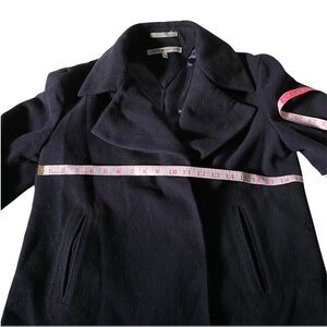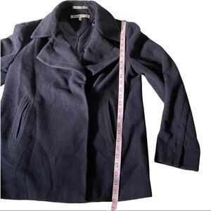 Tommy Hilfiger Navy Blue Wool Blend (79%) Lined Wrap with Tommy Hilfiger Flag on Both Sleeves Blazer Jacket Peacoat 4 Magnet Snap Buttons (Hidden) Men’s Size Small. This jacket is preowned and in very good condition.